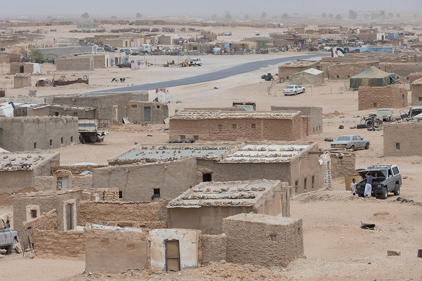 Formerly a Spanish colony, the Spanish dictator Franco drafted an agreement in 1975 that led to the occupation of the Western Sahara by Morocco and Mauritania, after a Spanish retreat. A guerrilla war ensued between the occupying forces and the Sahrawis, driving the Sahrawi population into refuge across the border in Algeria, near the Algerian city of Tindouf. Even though Mauritania withdrew from the conflict in 1979, Morocco occupied more and more of the Western Sahara territory by building a succession of walls and mined fortification lines, cutting through the desert country. These so called 'berms' - several thousand kilometers long - divide the country into a occupied zone, and the so-called Liberated Territories. Since 1991 a ceasefire has stopped the fighting, though a referendum on the future of the country has been consistently delayed by Morocco. The Moroccan occupied area holds one of the largest phosphate deposits on this planet and gives access to rich fishing grounds off the coast in the Atlantic Ocean.
